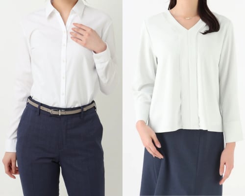 秋冬のシャツやブラウスといえば、とろみのある素材やVネックがおすすめです。