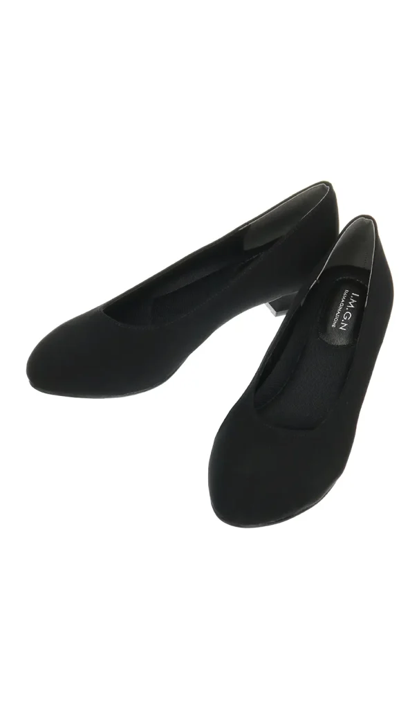 涼しげなブラックのフォーマルワンピースに布製のラウンドトゥパンプスを合わせました。ブラックのパンプスでも、どこか抜け感のある色味を使えば、入学式・入園式など晴れの日にも馴染みます。4Eの幅広い足型を採用したローヒールのラウンドトゥパンプスなら、普段あまりパンプスを履かない方でも履きやすいでしょう。