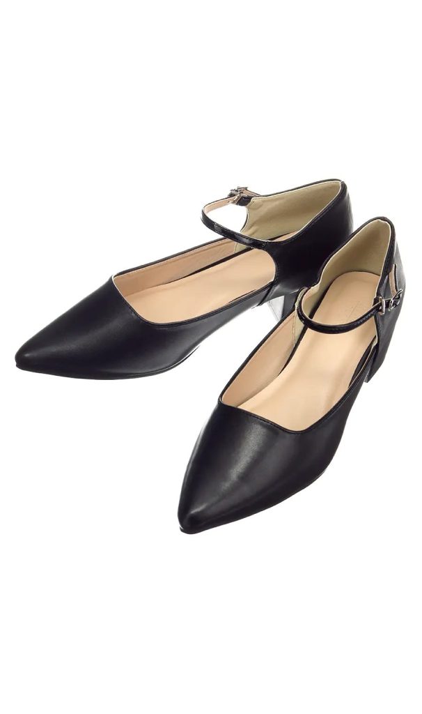 3-3.ポインテッドパンプス【アンクルストラップ】(ブラック)