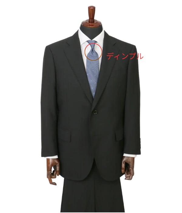 ディンプルとは、ネクタイの結び目の下のくぼみのこと。くぼみがあることで光の加減による光沢が生まれます。