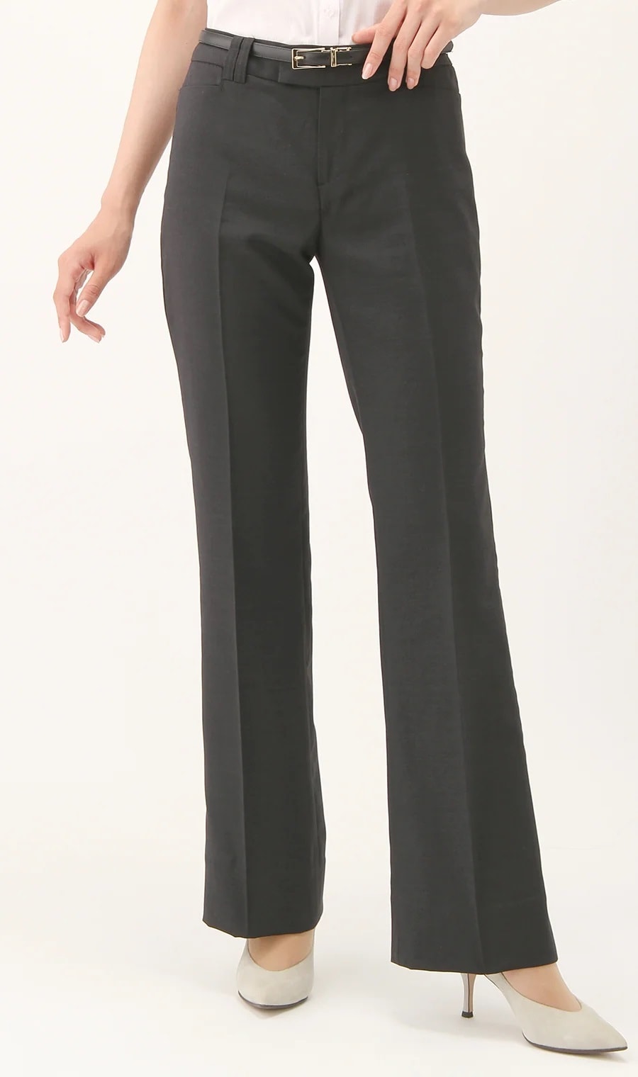 膝から裾にかけて幅が広くなっていくシルエットパンツの総称。膝下を長く見せる「スタイルアップ効果」が期待できる。