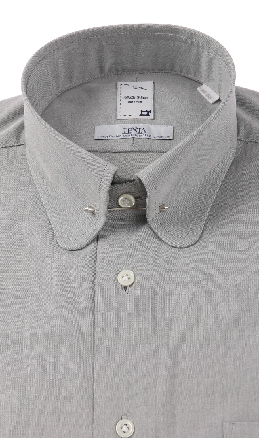 襟先の中間にハトメ穴(アイレット)を開け、ピンを通したシャツのこと。カラーピンを使用し、ネクタイを立体的に魅せることが出来る。
