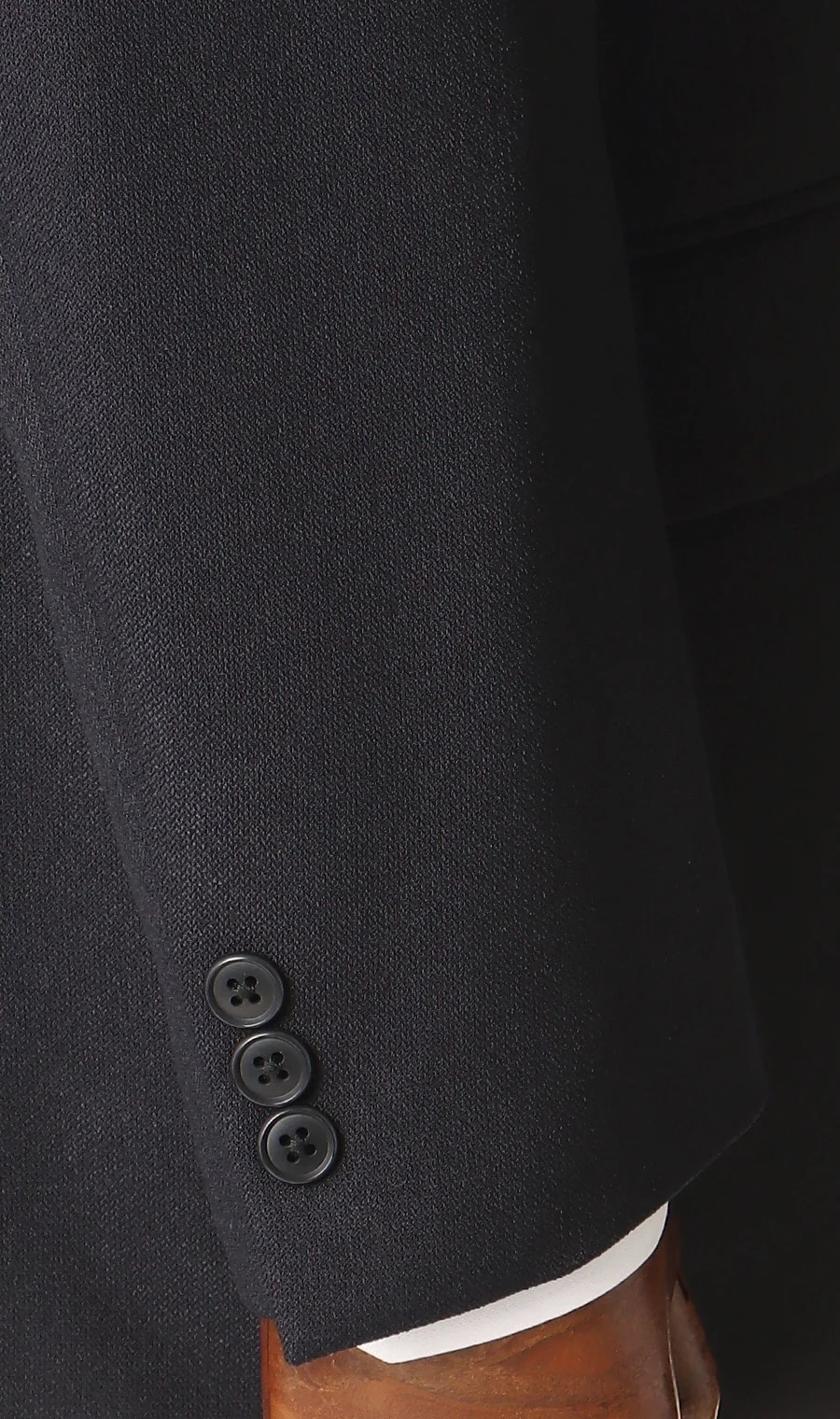 袖のボタンホールが閉じており、飾りボタンが付いている。反対に、ボタンホールが空いているものを「本切羽」という。
