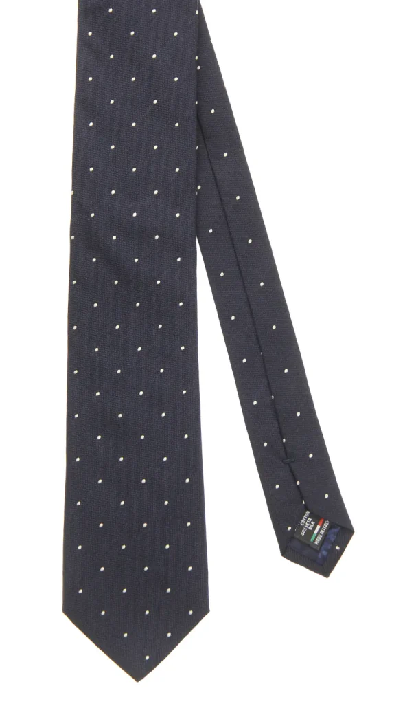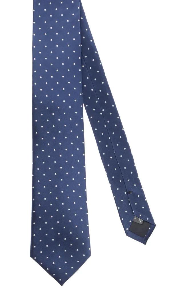 春先の胸元にしっくりくるのがドット×ブルー系のネクタイです。ネイビーより明るい色が、希望に満ち溢れたワクワク感を演出してくれます。結婚式やビジネスシーンなどでも幅広く活用できるので、オールマイティな1本が欲しい方はぜひ取り入れてみたください。