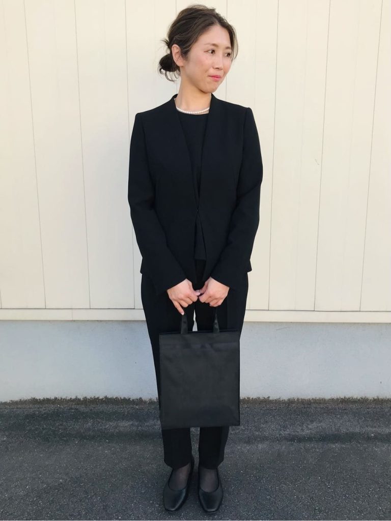 最近では、法事でも黒のフォーマルパンツスーツを選ぶ方が増えており、立ち座りの多い場面でも快適に過ごせます。