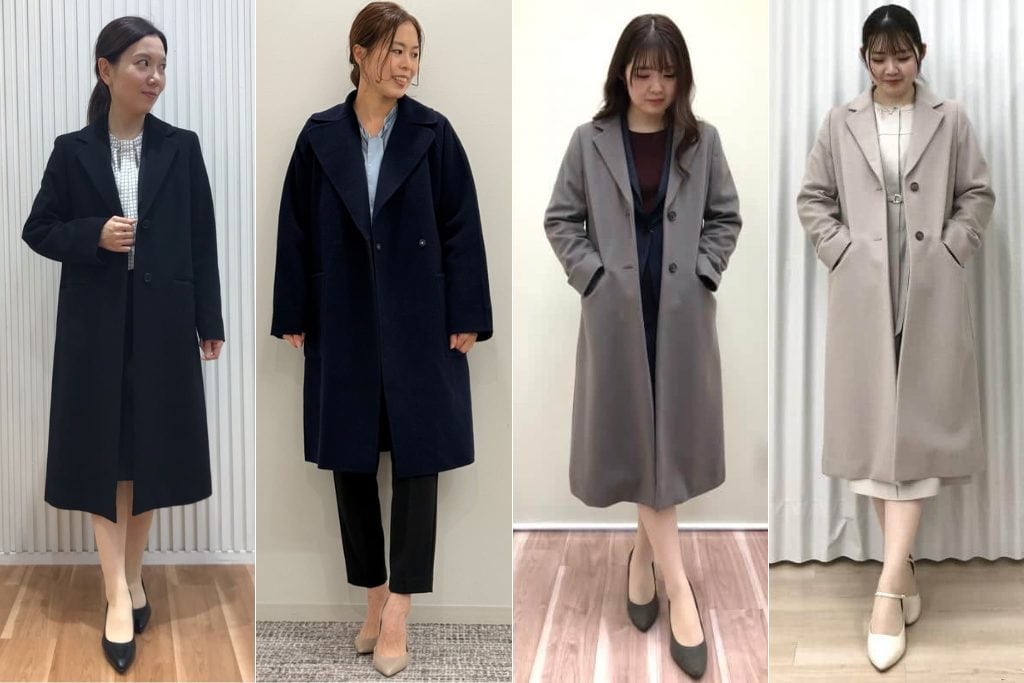 コートの下に着るスーツに合わせたカラーを選ぶと、よりまとまりが出て上品な印象に仕上がります。