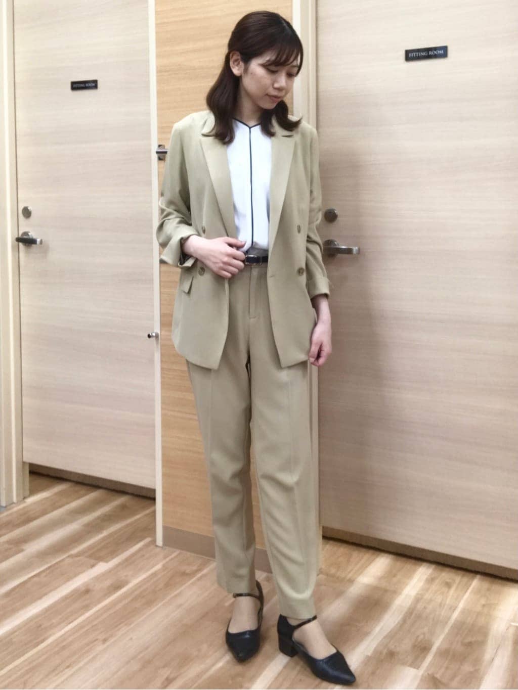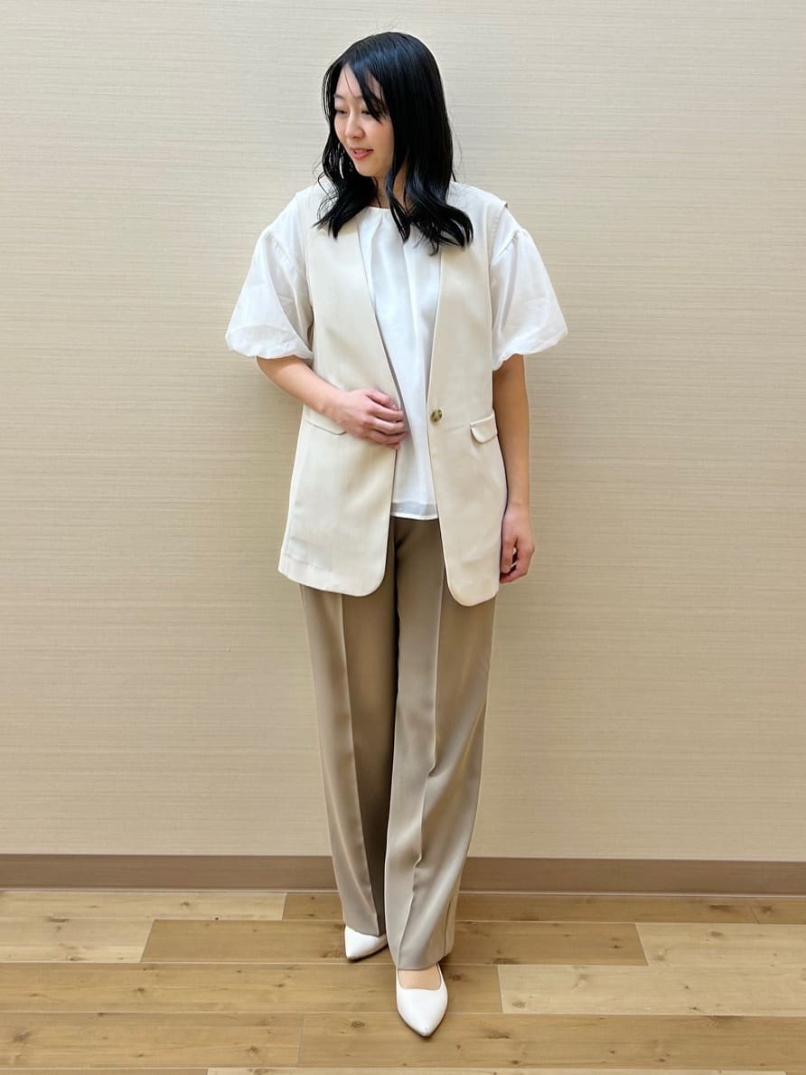 アイボリーカラーと合わせることで、明るい雰囲気に。きれいめカジュアルな着こなしで、オフィスシーンはもちろんオフの日にもおすすめです。