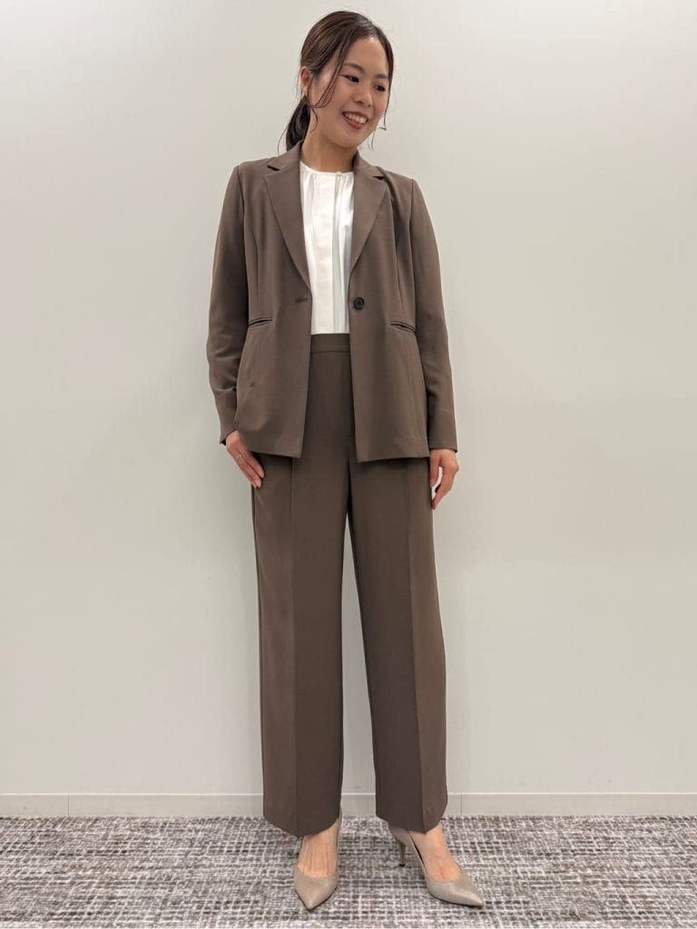 上下が同素材・同色のセットアップも、手軽にきちんと感を演出できておすすめ。