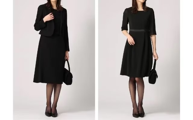 喪服のジャケットやワンピースは、肌の露出が控えめであることが望ましいとされています。そのため、ワンピースの袖丈は五分袖か七分袖が快適です。