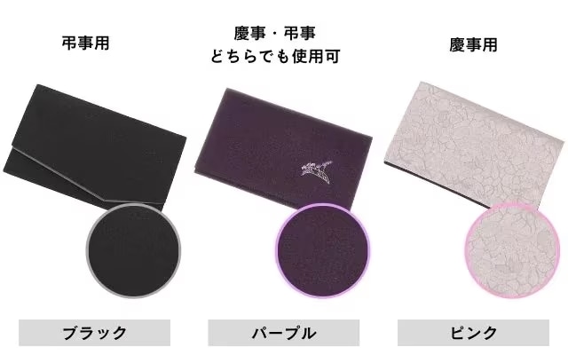 袱紗のカラーバリエーションは豊富ですが、弔事では寒色系を選ぶようにしましょう。なかでも「紫色」は慶事弔事両方で使用できるので、ひとつ持っておくと便利です。