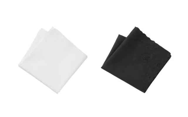 喪服に合わせるハンカチは、黒または白色を選びましょう。デザインは無地が基本ですが、最近ではレースのような多少の装飾であれば問題ないとされています。