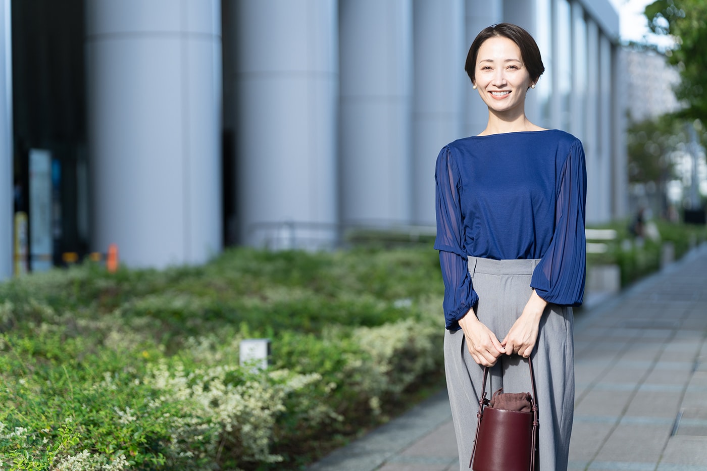 オフィスカジュアルでは、ホワイトやブラックなど無難なカラーばかりを選んでしまい、日々の通勤コーデがマンネリ化してしまっている方も多いでしょう。そのような場合は、コーデ全体のバランスを見ながらネイビーブラウスを取り入れてみるのがおすすめです。