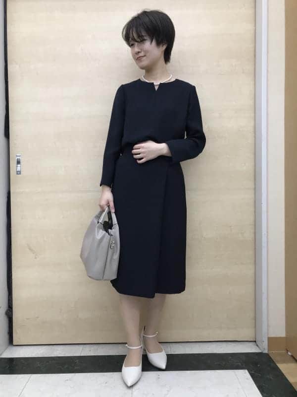 ここからは、オンオフ問わず着やすいネイビーブラウスコーデを8つご紹介します。普段着で取り入れたい方も、オフィスや冠婚葬祭で取り入れたい方も、ぜひ参考にしてください。