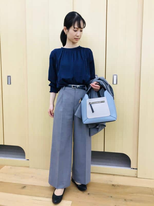 2. オフィスでも活躍!ネイビーブラウスコーデ8選