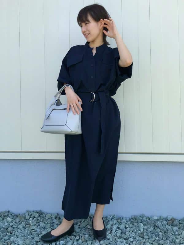 低身長の方におすすめの、1枚でさらっと決まるシャツワンピコーデです。ベルトとスリットが付いているため、1枚で簡単にスタイルアップが叶います。接触冷感や吸汗速乾など、夏にうれしい機能性も満載です。
