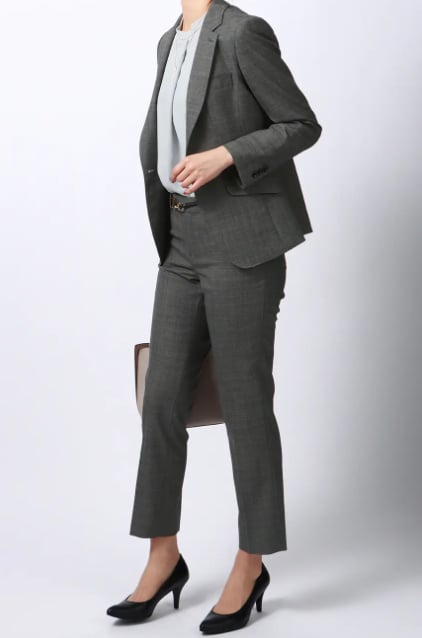 ビジネスカジュアルとは、他社への訪問時にふさわしい、ややフォーマルな服装のことです。ジャケット+スカートまたはパンツが基本で、取引先やお客さまに会うことを想定した服装を指します。