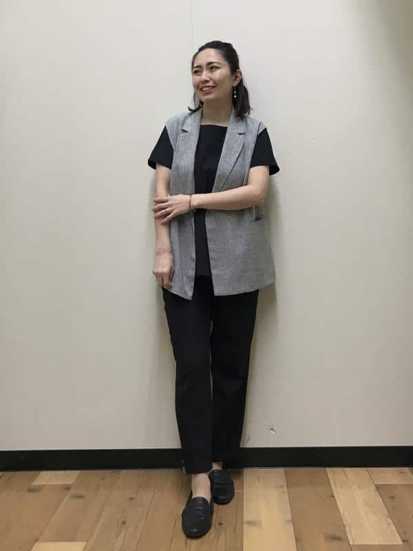 4-2.オフィスでもきちんと見えるグレーのジレコーデ