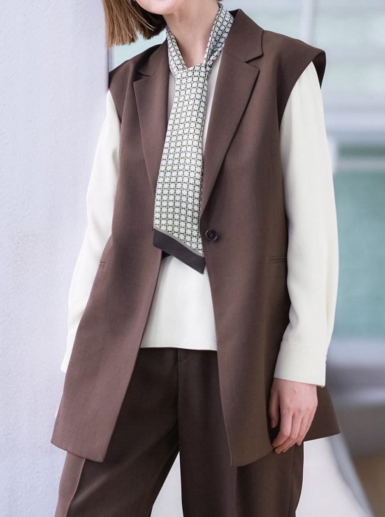 いつものコーディネートに取り入れるだけでトレンド感が演出できるジレは、オフィスでも大活躍する万能アイテムです。