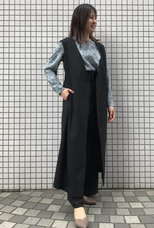 4-2.オフィスでもきちんと見えるグレーのジレコーデ
