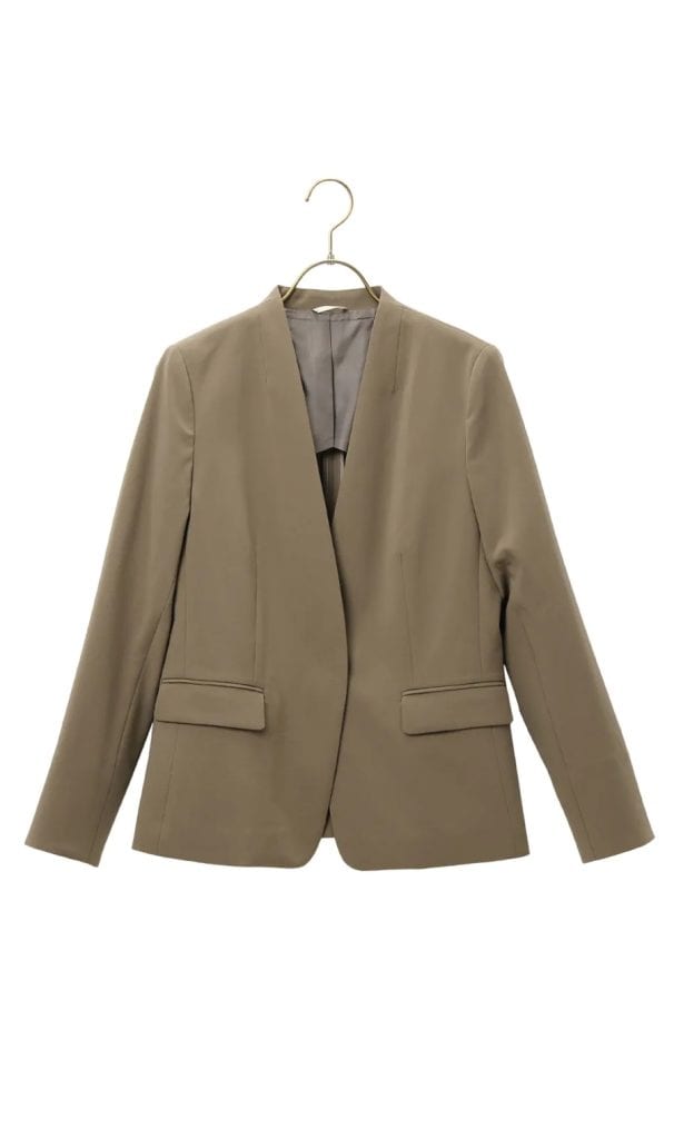 40代女性には、ノーカラーやテーラードのジャケットがおすすめです。ノーカラージャケットは首元がすっきり見え、女性らしいフェミニンな雰囲気に。ブラウスやアクセサリーが映えやすく、フォーマル感を出したい場面にもぴったりです。