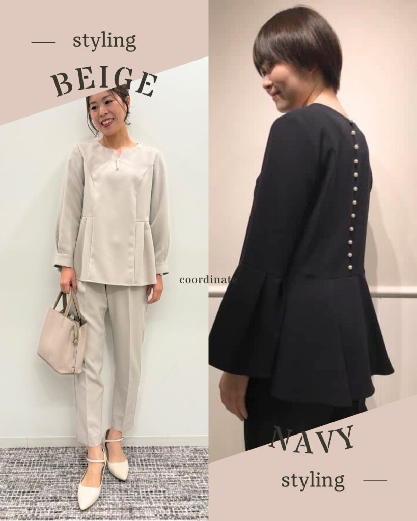 素材感や色味に統一感のない組み合わせは、フォーマルな雰囲気が損なわれてしまう可能性があります。せっかくパンツドレスで出席するなら、セットアップ風のデザインや、素材・カラーに統一感のあるアイテムを選ぶのがおすすめです。
