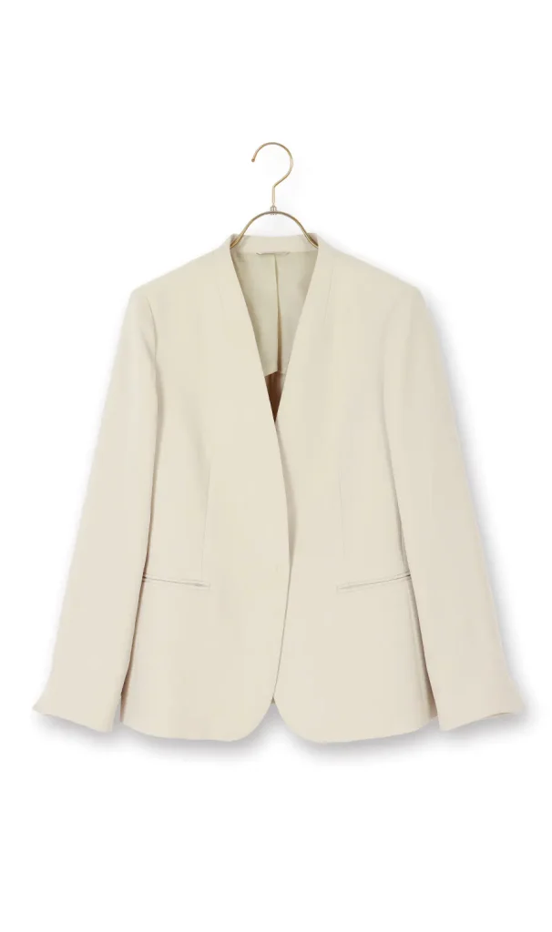 ベージュジャケットは、フォーマルな場でも使えて着回し力も抜群です。