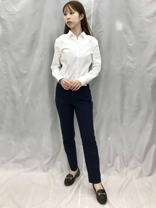 清潔感と知性を感じさせる配色で、ジャケットを羽織れば面接やビジネス初日など大切な場面にも着用できます。