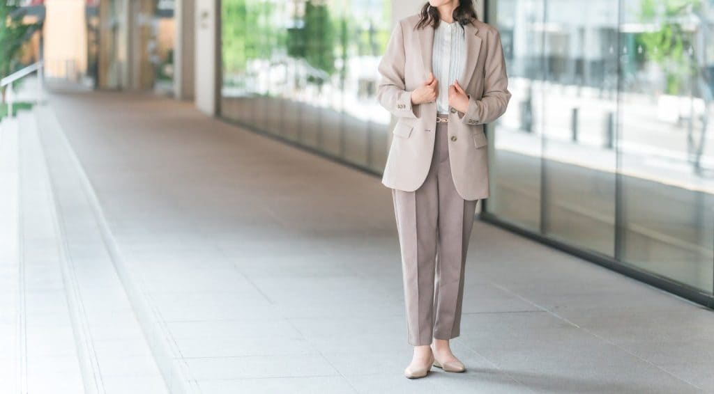 本記事では、レディーススーツのボタンに関するマナーや種類、留め方を紹介しました。メンズスーツと違って、レディーススーツではボタンはすべて留めて着用するのが基本とされています。正しいボタンマナーを身につけて、きちんと感のあるスーツの着こなしを目指しましょう!
