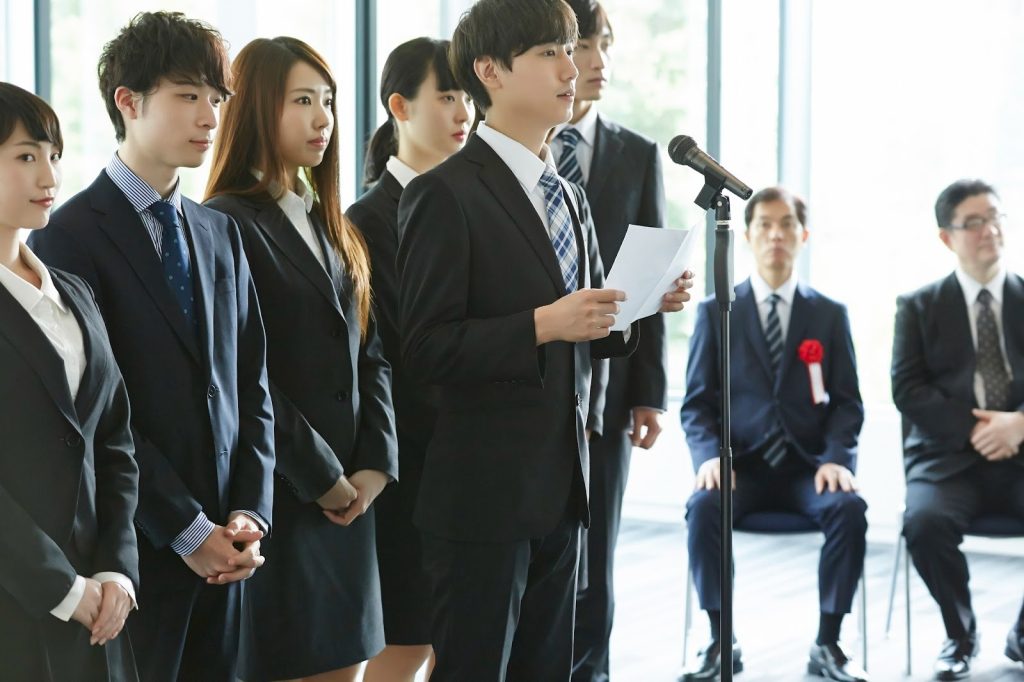 多くの入社式で取り入れられていますが、人数が多い場合などは1名が代表して挨拶をするケースもあります。不安な場合は、先輩などに聞いてみると良いでしょう。