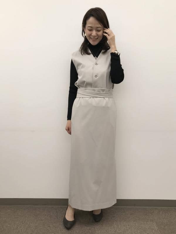 ロングジレとしてもワンピースとしても使えるアイテムは、インナーを変えるだけで印象が変わります。インナーにブラウスを選べばフォーマルな印象に、カットソーと合わせればカジュアル寄りの印象になります。首元をスカーフで飾れば華やかな印象にもなるので、式典への出席の際にもおすすめです。