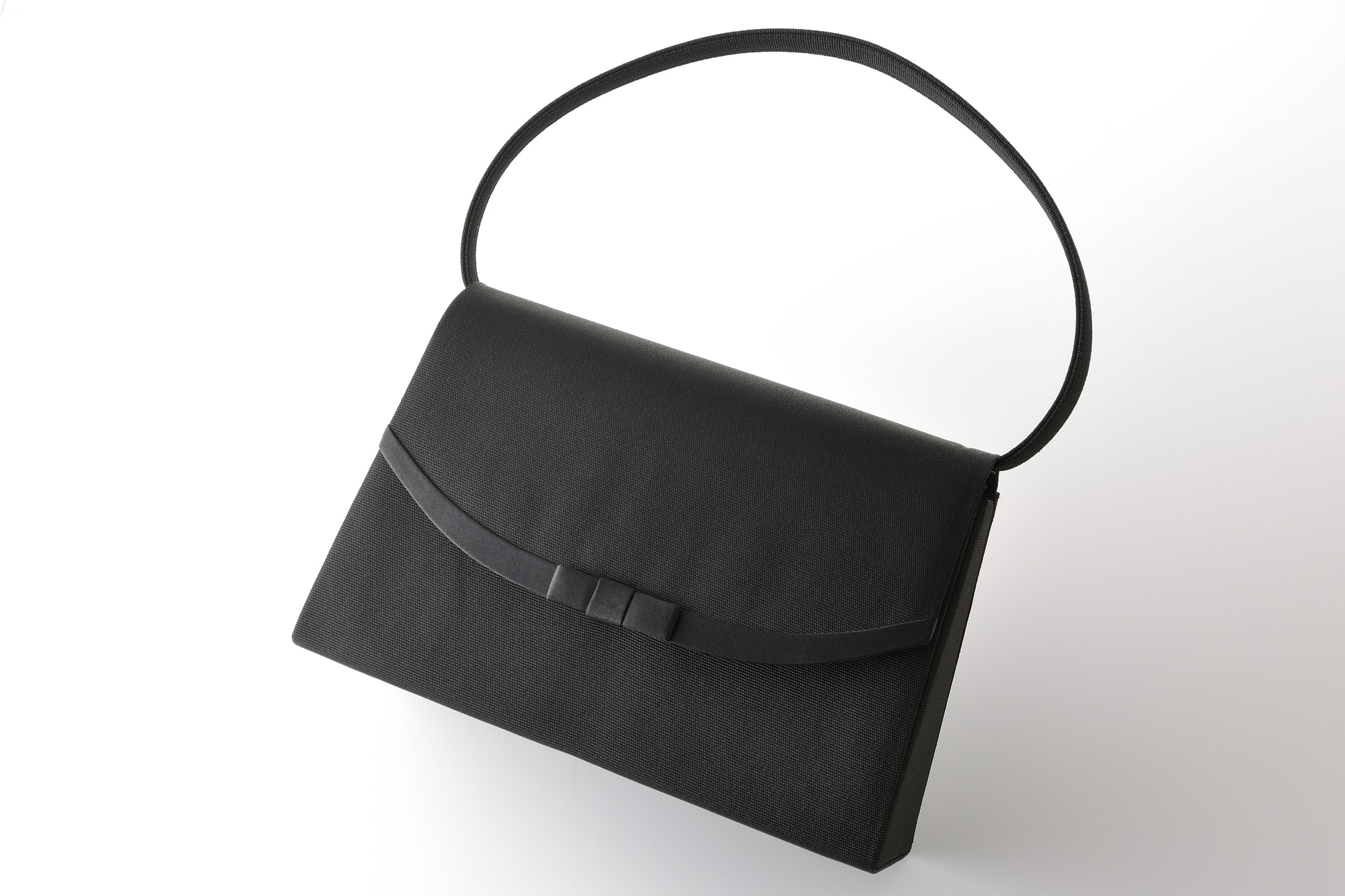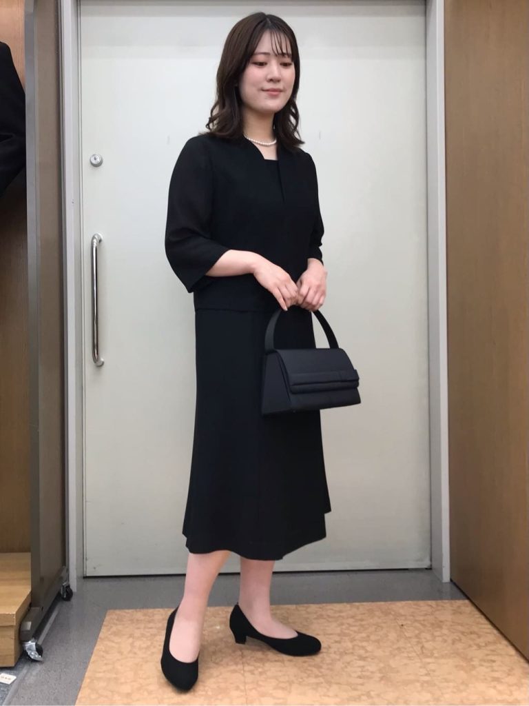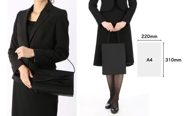 貴重品や最低限の持ち物が収まる、コンパクトで上品なフォーマルバッグを選びましょう。色は黒や濃紺が定番で、装飾のないシンプルなデザインがおすすめです。