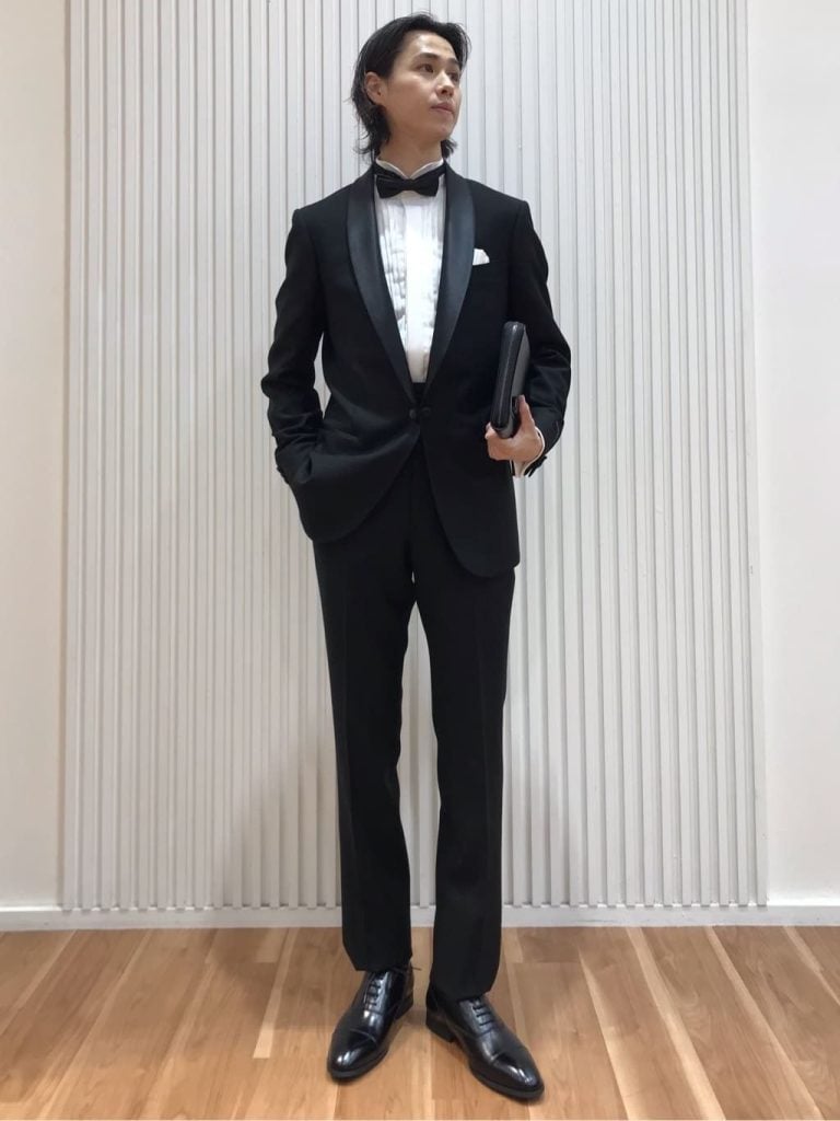 格式ある場所でおしゃれに着こなすなら、タキシードコーデがぴったり。