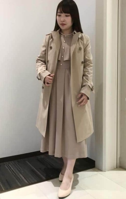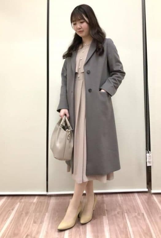 行き帰りにはチェスターコートを羽織って防寒対策もバッチリ。ロング丈でAラインシルエットのチェスターコートなら、コートを羽織ってもクラシカルで上品な雰囲気に。ワンピースとの相性も抜群です。