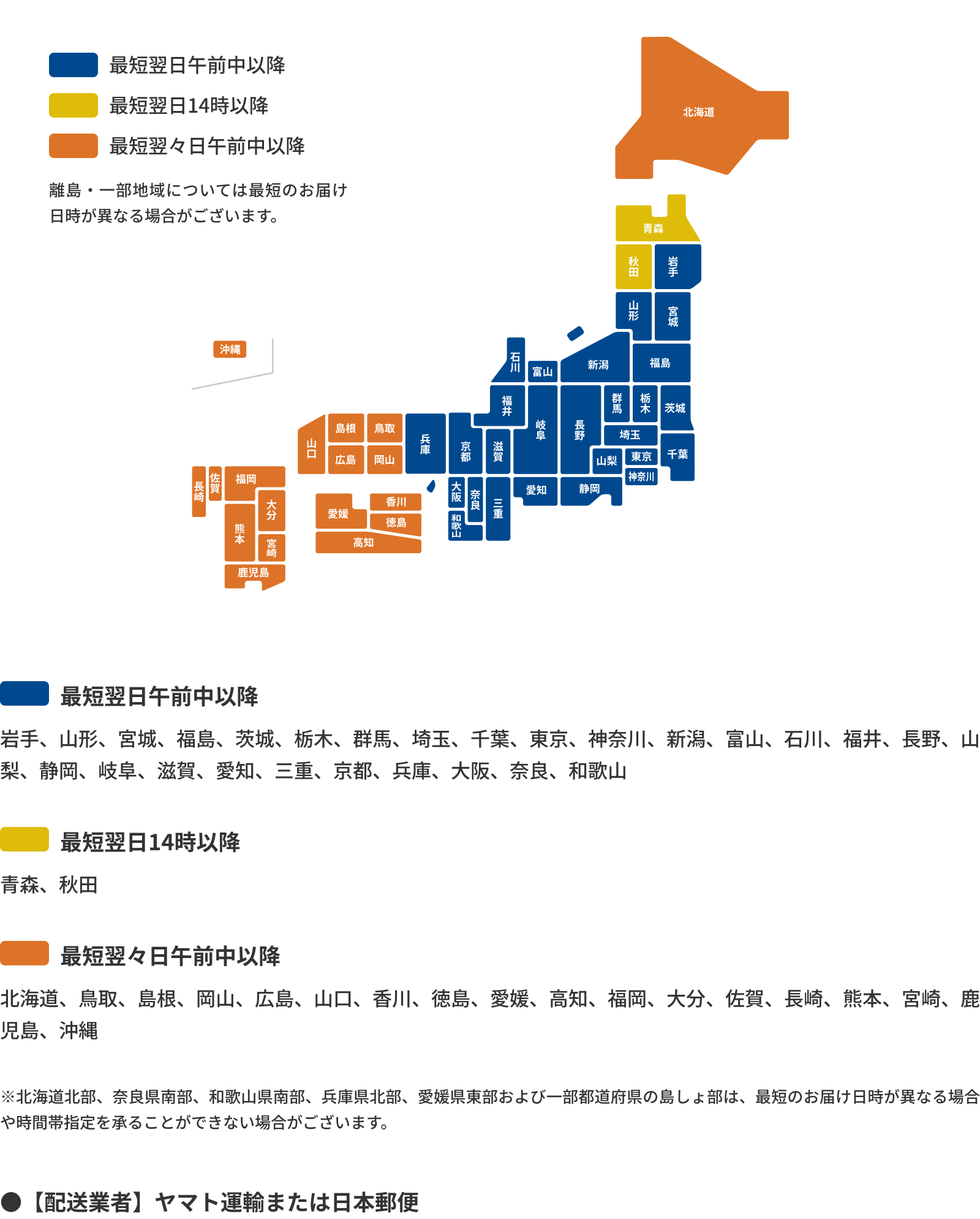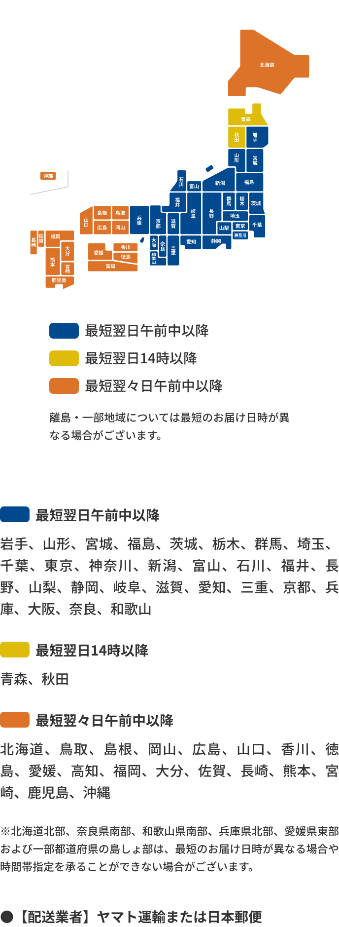 発送から到着までの目安日数(地域別)