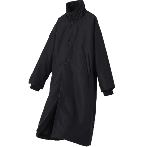 ブラックのスタンドカラーデザインは、シックなイメージでカッコよくきまるユニセックスコート。