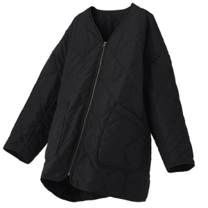 シンプルな見た目ながら、アクセントになるゴールドファスナーと、キルティングでひょうたんの模様をあしらったデザインは、カンタンにお洒落がきまる、毎日着用するにはもってこいの1着です。