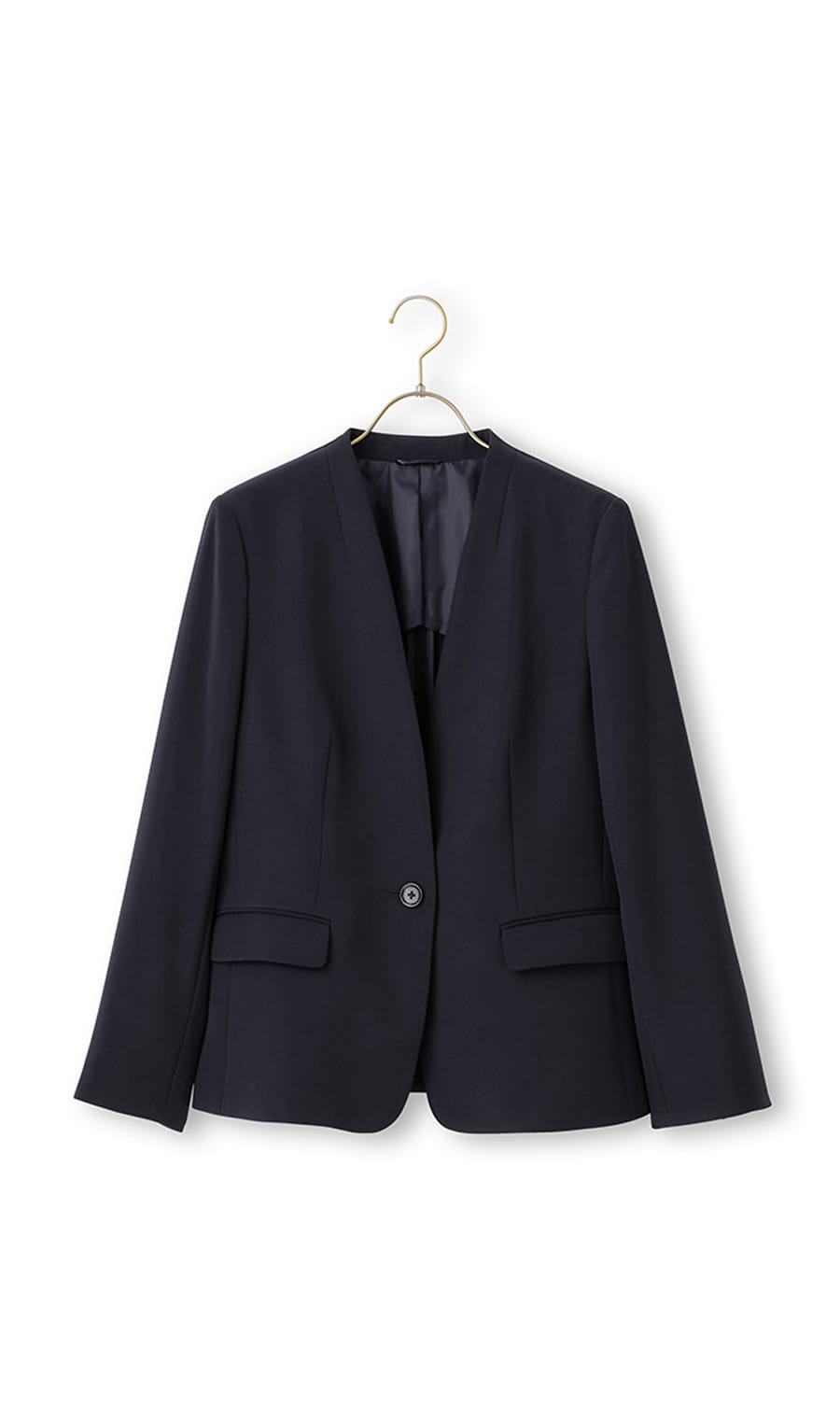 大切な思い出に残る日こそ選びたいネイビー。美しいドレープ性と落ち感がポイントのVカラージャケットです。シンプルなデザインと伸縮性に優れた快適な着心地です。