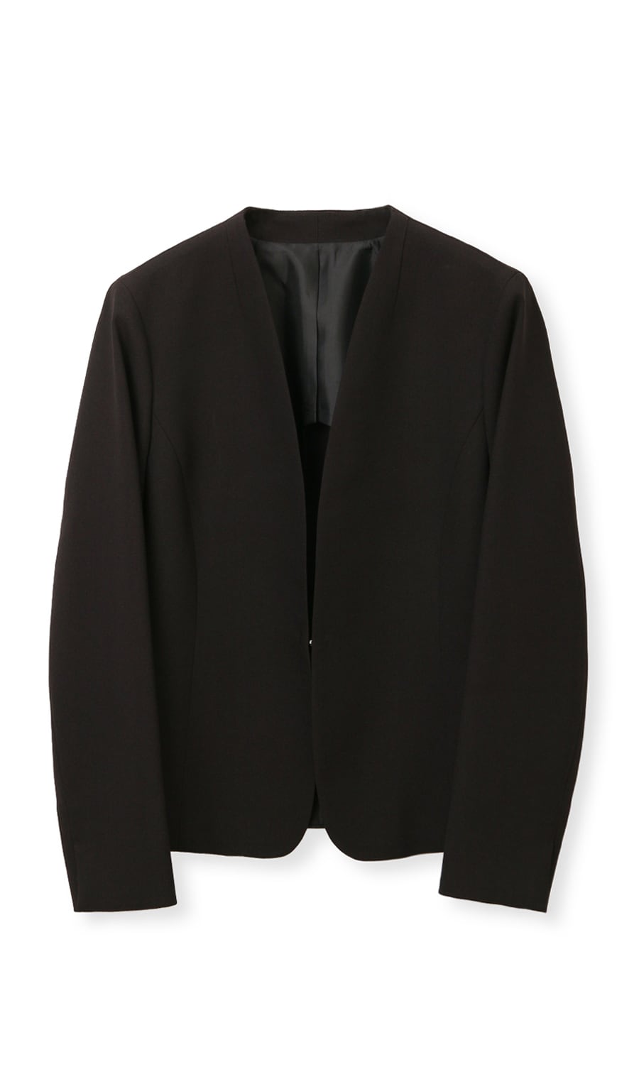 あえてやや肉厚な生地のため、ジャケットレスでもきちんと感を演出。