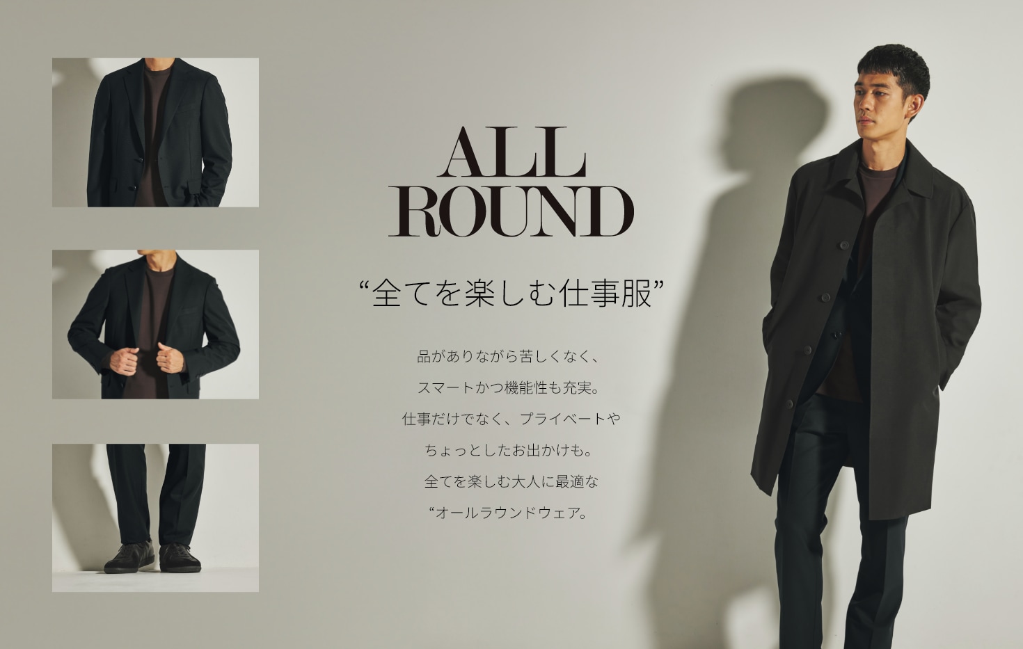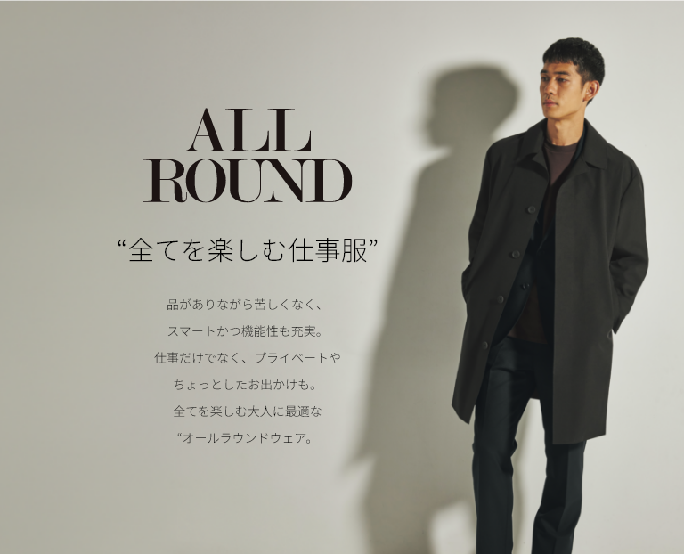 仕事の日もオフの日も、1着で幅広いスタイルを楽しみたい。ビジネスにもカジュアルにも馴染むデザインなら、コーディネートの幅が広がり、シーンに合わせた着こなしを自在に楽しめる。