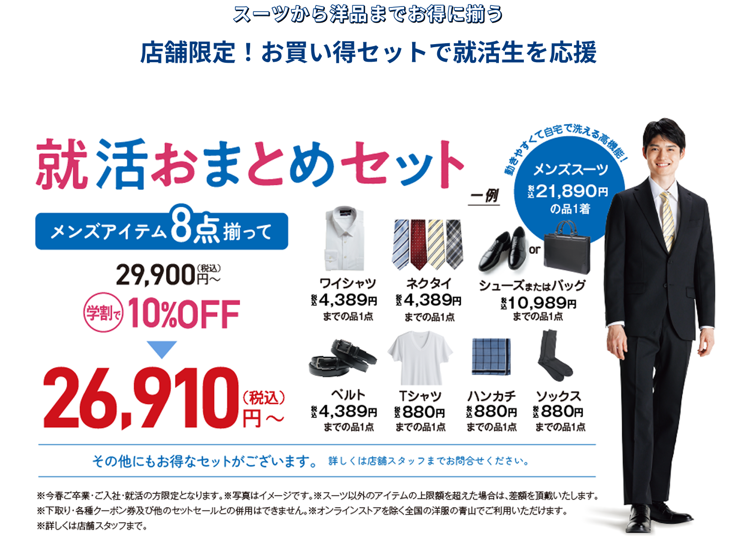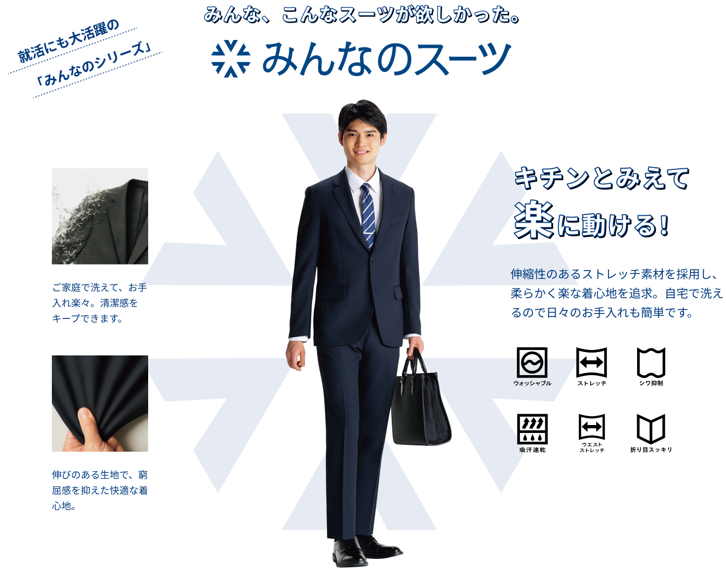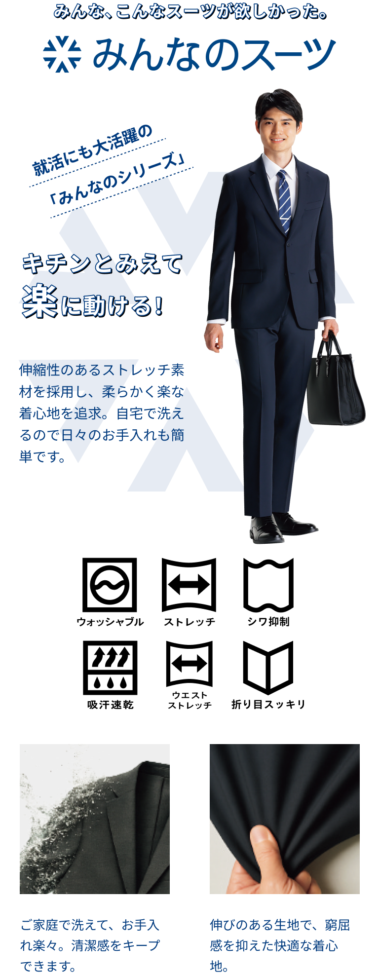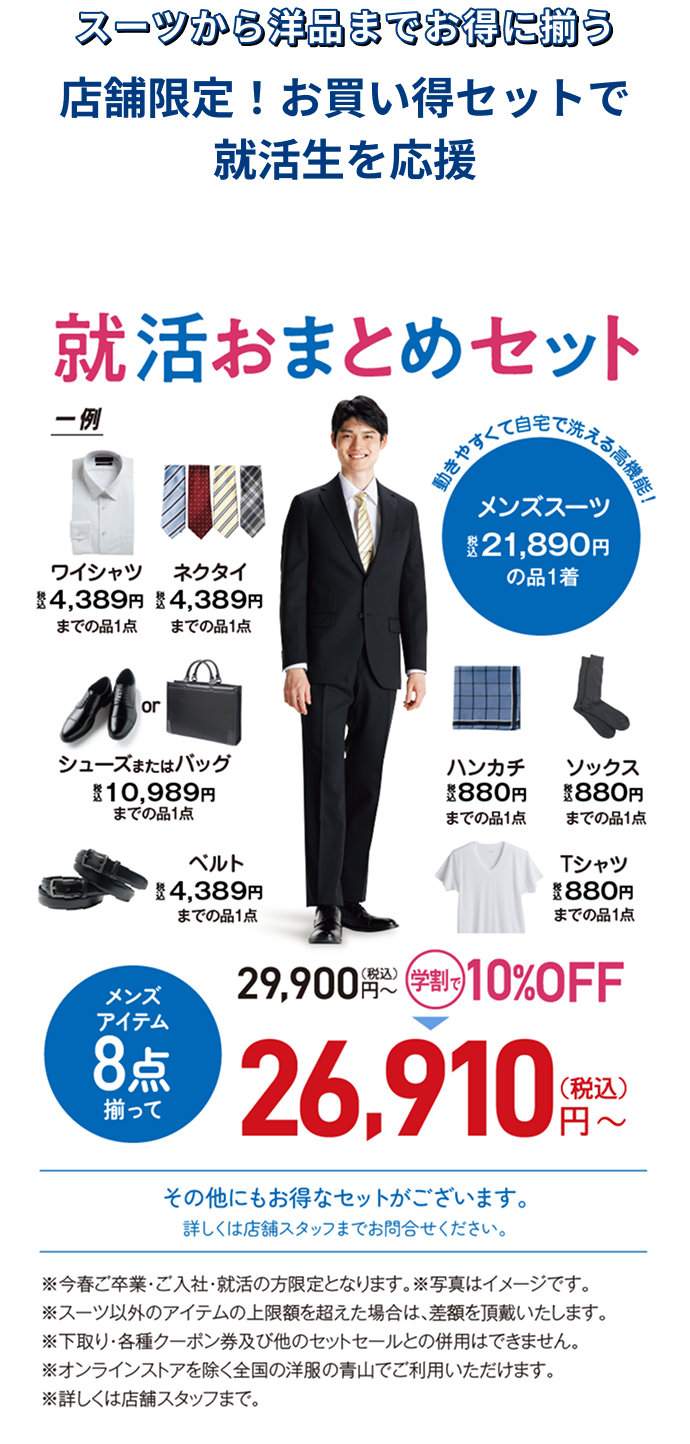 最近は、スーツ以外の服装で就活を行う場面もありますが、面接など選考が本格化するにつれて、スーツを準備される方が多くなります。活動ピーク時には、連日の説明会などスーツの着用頻度も増えてくるため、清潔感を保てる機能や、着慣れない服装でストレスにならないよう、着心地の良いものが人気です。また、スーツの着こなし方を事前にチェックすることも大切です。