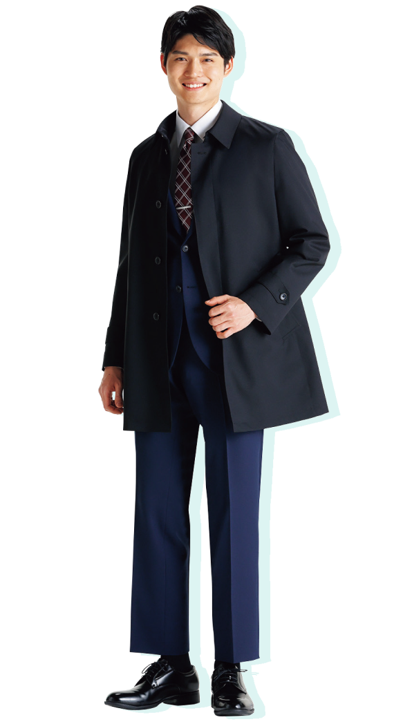 あらゆるシーンでお使いいただけるシンプル仕様のコートなら、長時間の着用でも疲れにくく、スーツの上から羽織っても軽やかです。