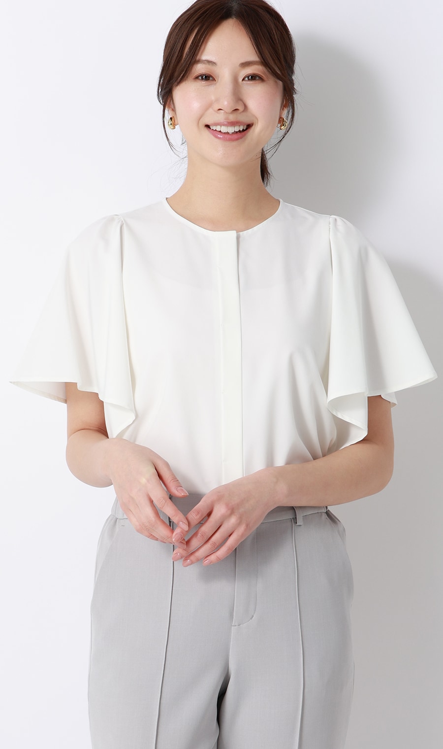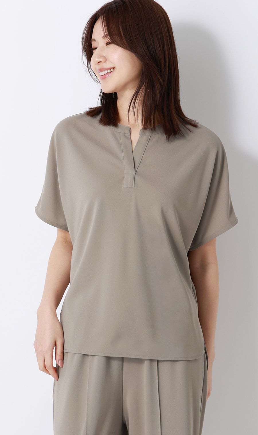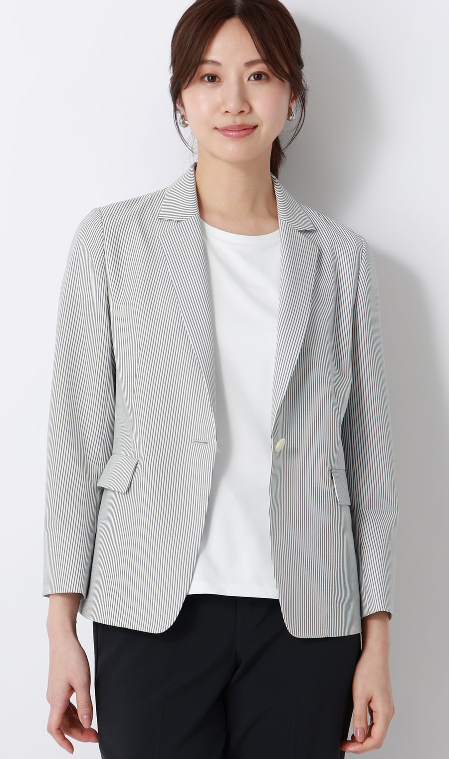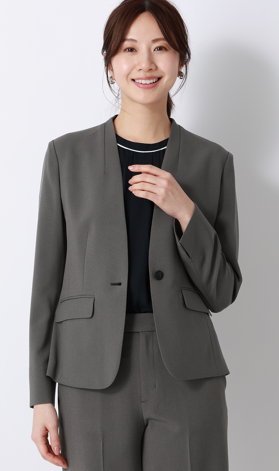 セットアップならではのきちんと感を演出。ブラウス、パンツだけでも着回ししやすい、長い夏の強い味方です。