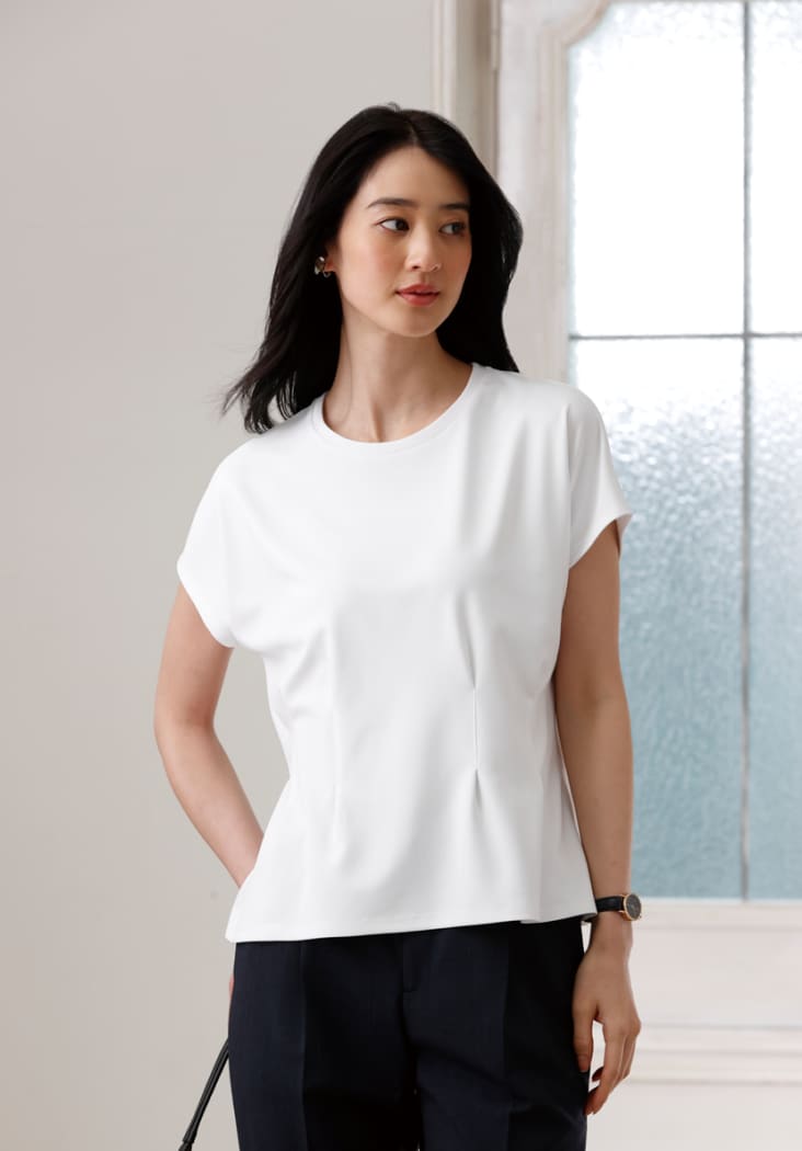 Tシャツほどラフ過ぎない、ビジネスで使いやすいカットソーです。一枚でも透けにくい高機能素材を使用しました。(※防透け指数93.0)