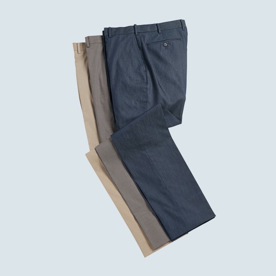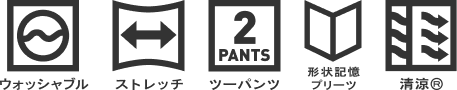 「暑い」を「涼しい」へ。「クールモーション®」が、夏のビジネスを解放する。夏場に嬉しい接触冷感と吸汗速乾を兼ね備えたパンツ。クールタッチでムレ・ベタつきを抑え、清涼感を保ちます。ウエストにはお腹周りの窮屈感を解消するための機能を施しました。