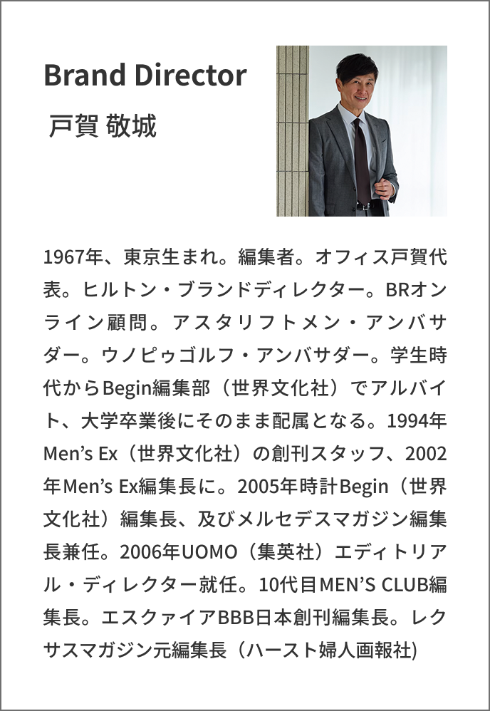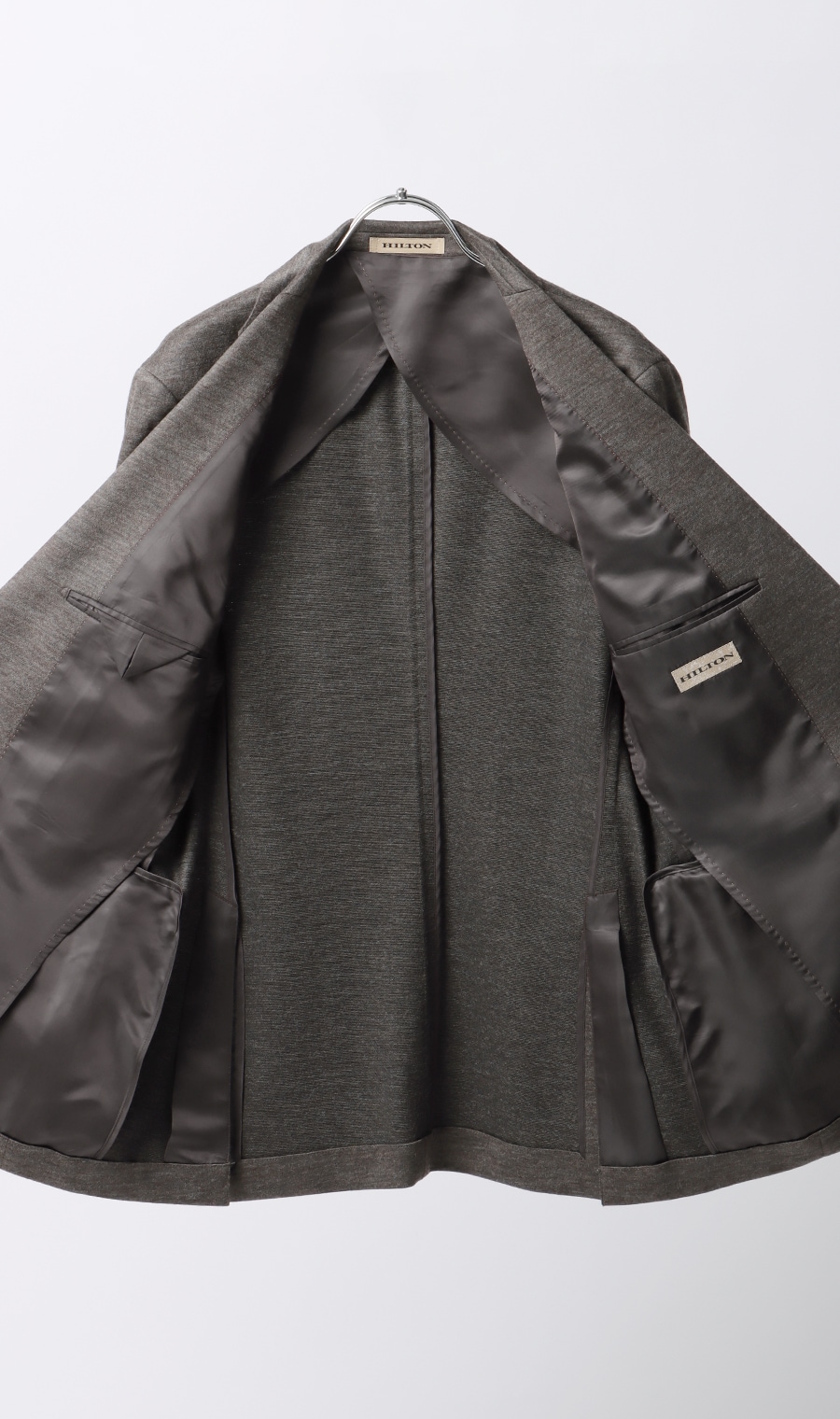 グレースーツは19世紀の産業革命時代の英国がルーツで、伝統ある「ビゴロ捺染」を採用し、こなれ感がありながら上品さも感じさせる色合いをつくり出している。裏地には希少価値の高いキュプラ素材を採用。繊細で滑りがよく、高級感と上品さを兼ね備えている。