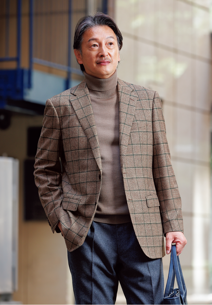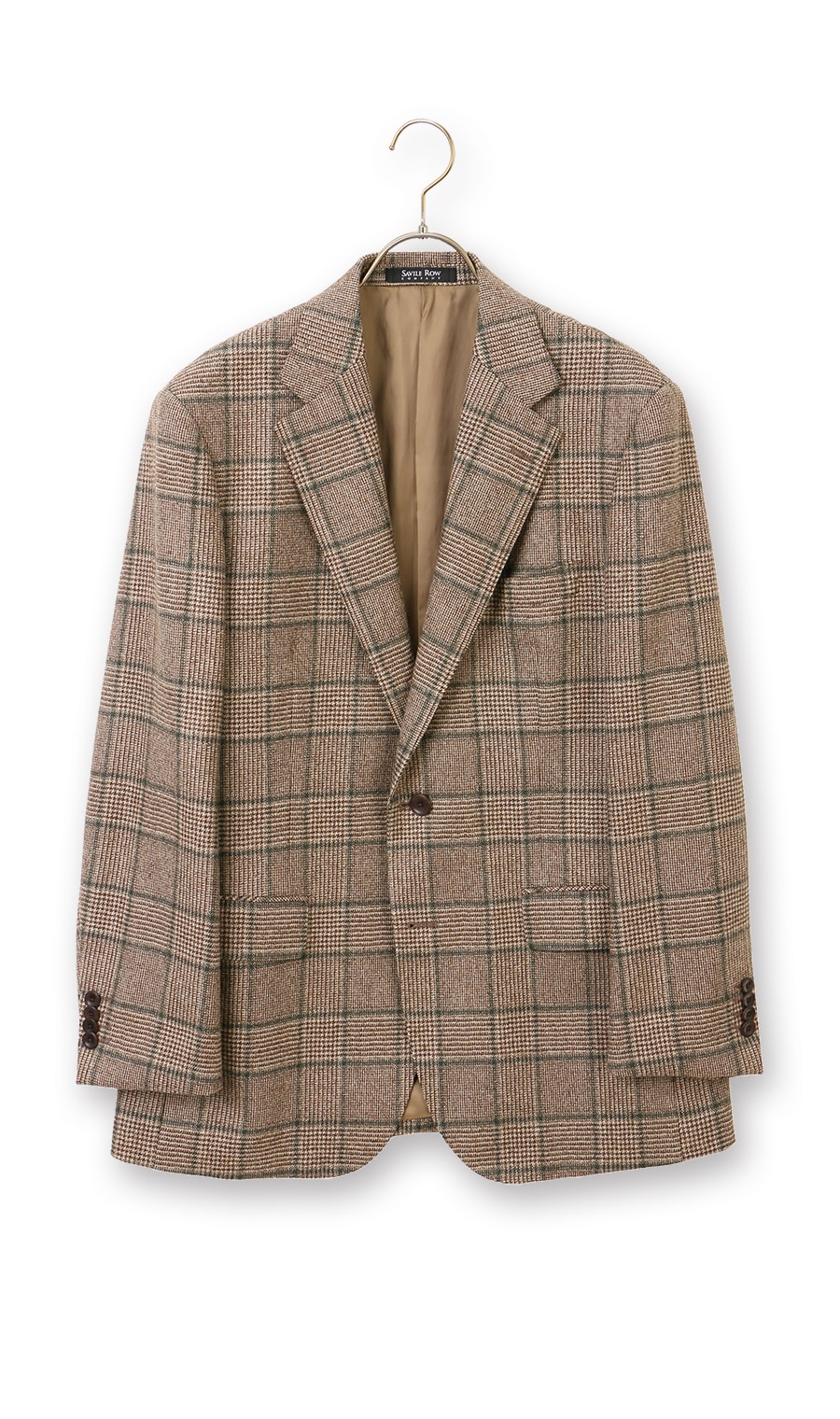 大柄のチェックがアクセントのシングルジャケット。厳選された上質な生地を使用し、一つひとつ丁寧に縫製された柔らかな風合いと美しい艶感。