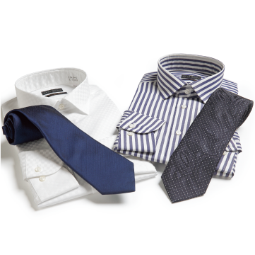 ドレスシャツは綿素材特有の「しっとり滑らか」な質感を保ちながらも、襟型は納まりの良いカッタウェイを採用し、ノータイスタイルでもサマになる仕様です。ネクタイは素材の風合いと綺麗な発色を活かした上品な一本。胸元に落ち着きのある気品を与えます。