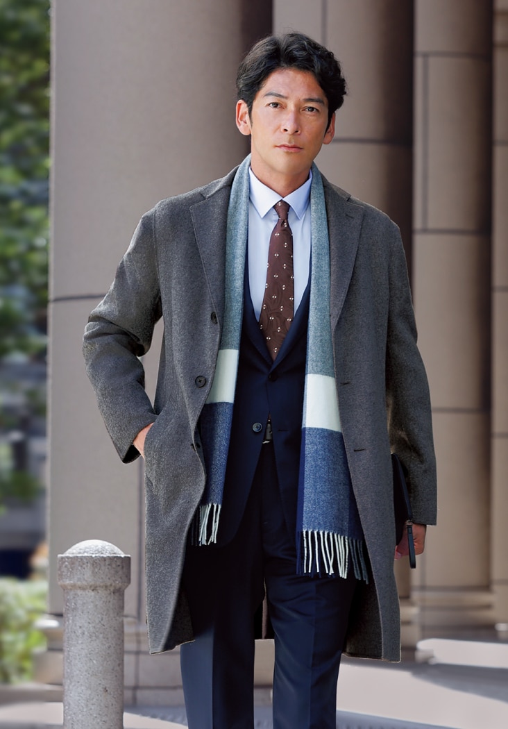 ダブルフェイスの生地を使用したリバー仕立てのコート。布1枚を纏うような柔らかくて軽い着心地でビジネススタイルに最適です。