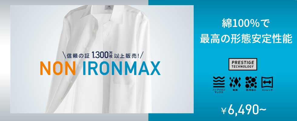 NON IRONMAX 綿100%で最高の形態安定性能 5,830円 NON IRONMAX 綿100%で最高の形態安定性能 5,830円