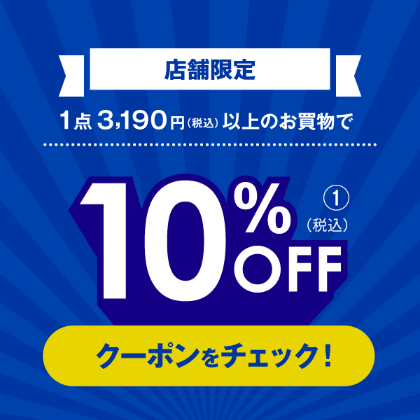 ●オンラインストアで商品総額3,190円(税込)以上のお買物の際にご利用いただけます。 ●送料・手数料・補正賃を除いた商品総額からの割引となります。 ●他のクーポン、割引券、および優待券との併用はできません。 ●店舗でのご利用はできません。